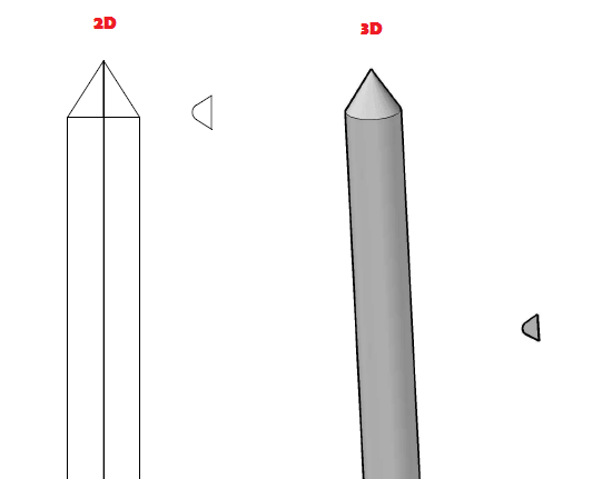 In the following step, you need to move the thread a little upward along the figure axis in a way it will be at least at the same ending geometry with the tip of the cylinder for the threads to be having an entry path.